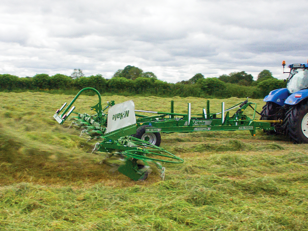 The McHale PROPEL T8-1020 is a high capacity trailed tedder fitted with 8-rotors to provide a working width of 10.2M. This straight-forward, highly efficient, machine is fitted with a long carriage frame that connects the tedder to the tractor when in operation and serves as a carrier when in transit. The machine is attached using a 2-point linkage and can be easily unfolded, lifted and lowered using only two double acting spools. Wide transport tires in front of the rotors allow the rotors to float freely, providing superior floation and help prevent soil contamination.