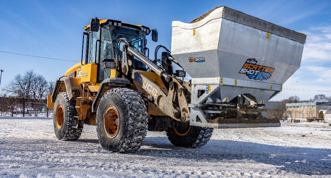 The HS300 is designed for use on wheel loaders. With dual hydraulic drive stainless steel spinners, direct drive agitators and self-loading features, this salt spreader is an ideal ice management solution that can utilize the power unit already onsite for snow plowing.