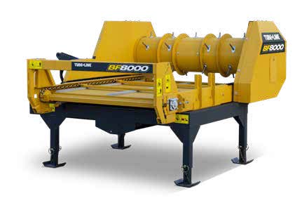 The BF8000S is designed to feed out round bales up to 6’ in diameter and weighing up to 2,500 lbs. Once placed on the table, an apron chain rotates the bale as the drum’s fingers unravel the hay. As the core of the bale is approached, the table can be tilted increasing contact between the bale and the drum ensuring the entire bale is fed out.
